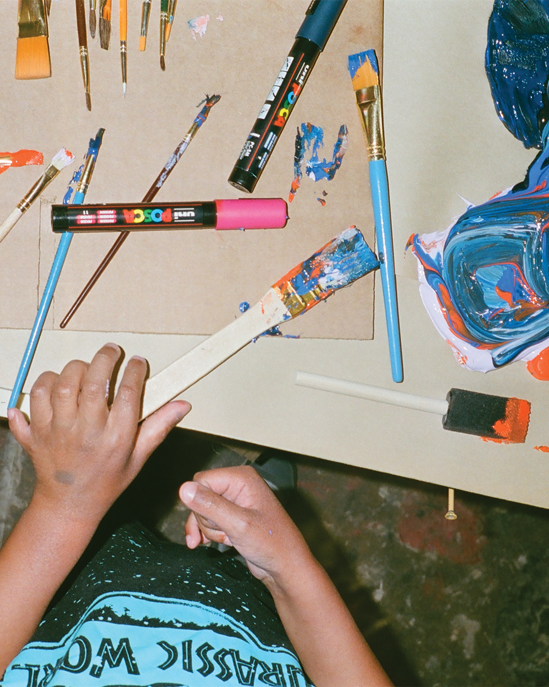 Paired with James, the 12,000th Make-A-Wish Michigan recipient, whose wish was to visit LEGOLAND, we collaborated on an abstract piece titled Brick by Brick. The work featured screen-printed bricks on panel and guided abstract expression, symbolizing imagination, construction, and possibility.