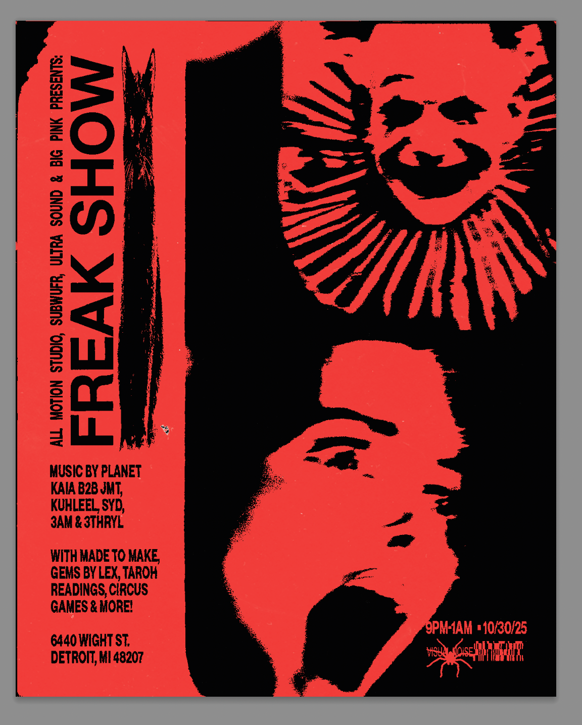 All Motion Studio partnered with SUBWFR and Ultra Sound to transform Big Pink into a Halloween experience like no other. Titled “FREAKSHOW,” the installation featured cascading fire-retardant fabric drapery that created a sense of theatrical scale and circus-inspired allure.